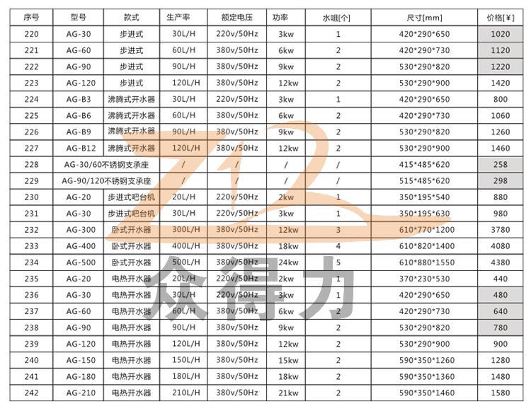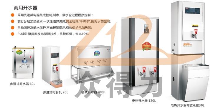 眾得力廚具一站式采購平臺為您提供嘉盛系列各式步進式開水器,商用開水器,柜式開水器,電熱開水器,適合廚房酒店、餐飲、高檔休閑場所、學校、醫院等企事業單位,企業使用,產品符合食品衛生需求