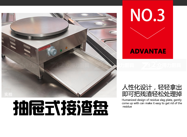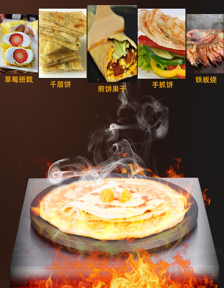 班戟爐是一種恒溫加熱,速熱快的美食設(shè)備,整機(jī)外殼采用優(yōu)質(zhì)不銹鋼材質(zhì),板材厚,加熱盤(pán)采用生鐵鍛造,表面光滑,食品級(jí)不粘涂層拋光處理,可加工制作各種煎餅。